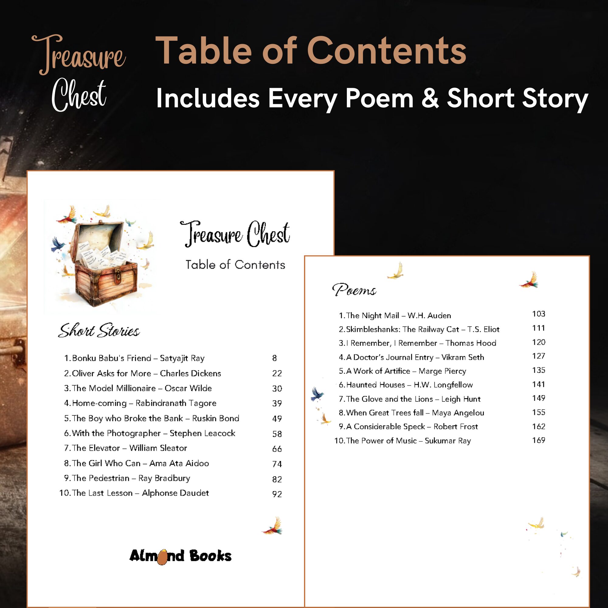 This Textbook for Treasure Chest (English Literature) by Almond Books is designed for ICSE Classes 9 and 10 students. It offers a fresh and engaging alternative to traditional options like Evergreen. The CISCE Board no longer recommends any particular publisher, which means students and teachers are free to choose any textbook that helps them study effectively and this edition is published to meet that need perfectly.