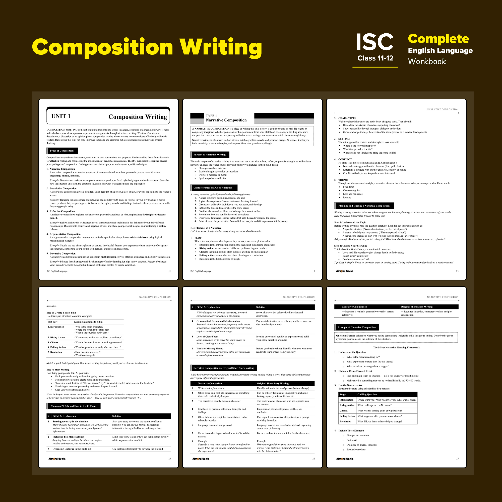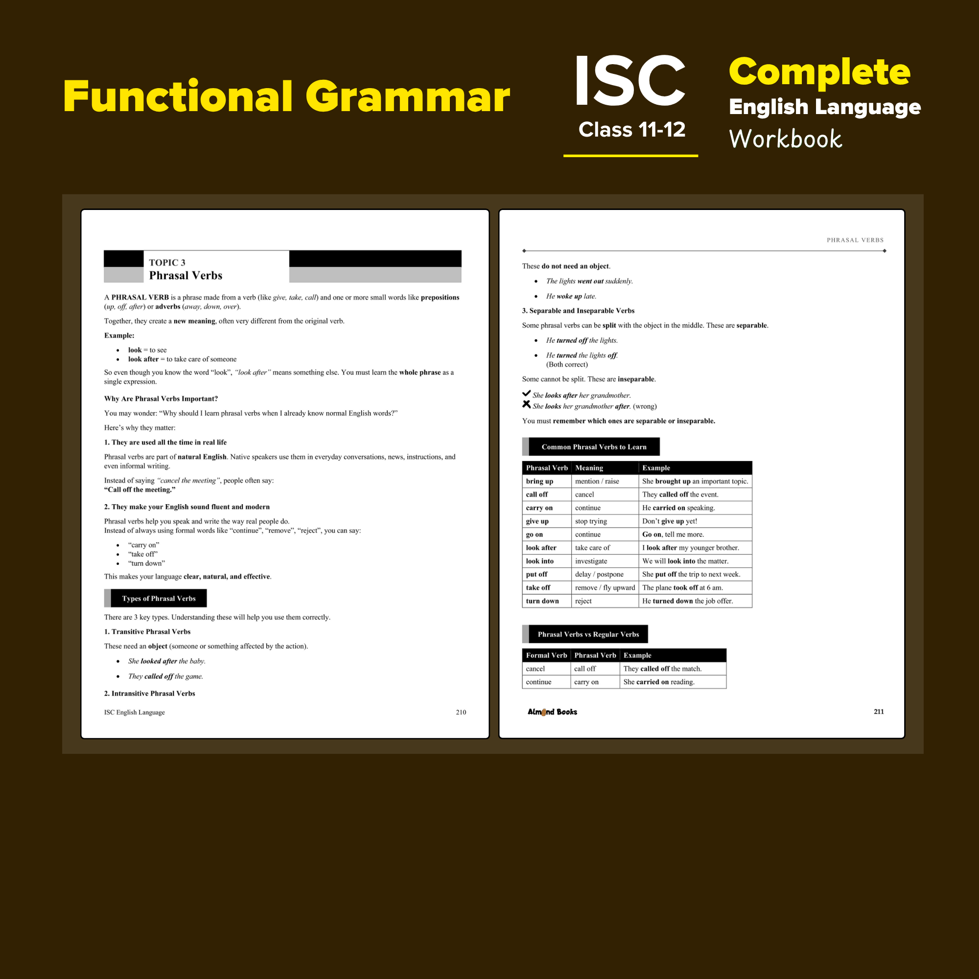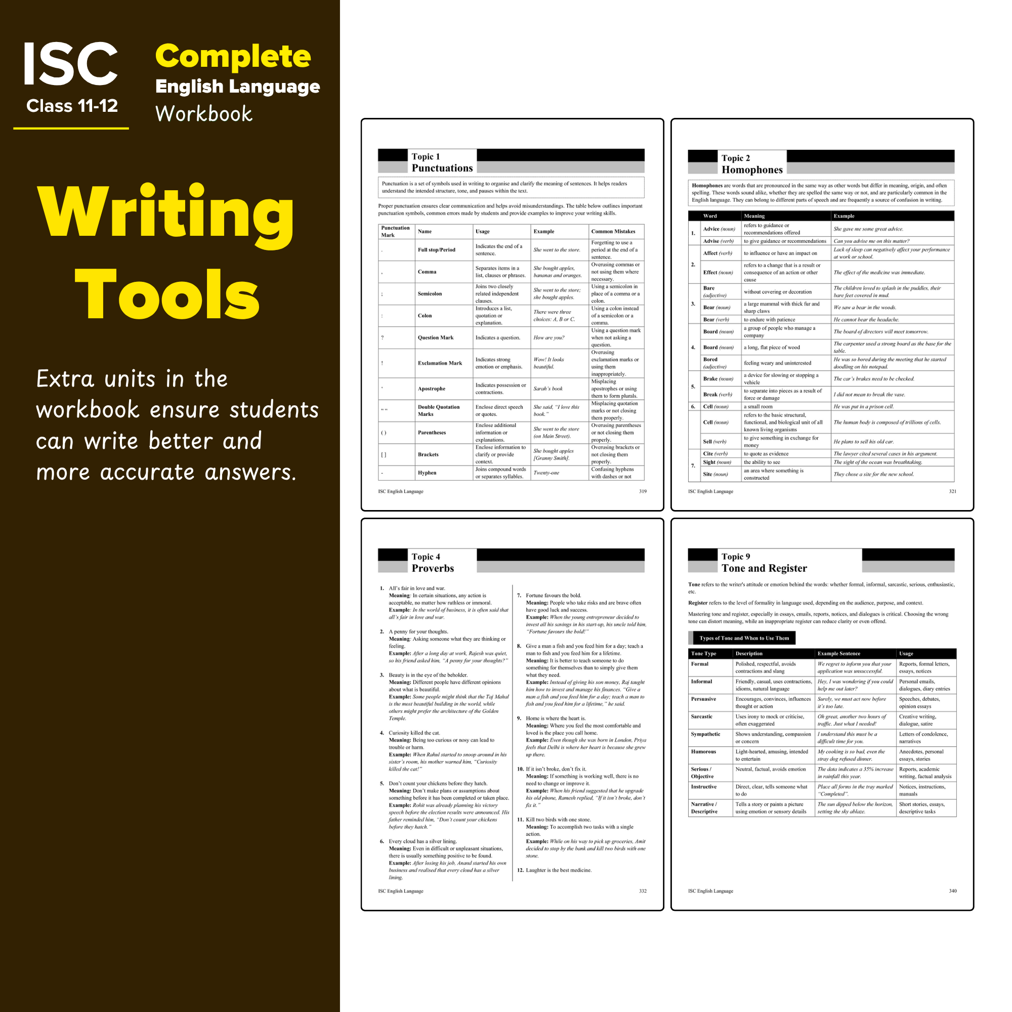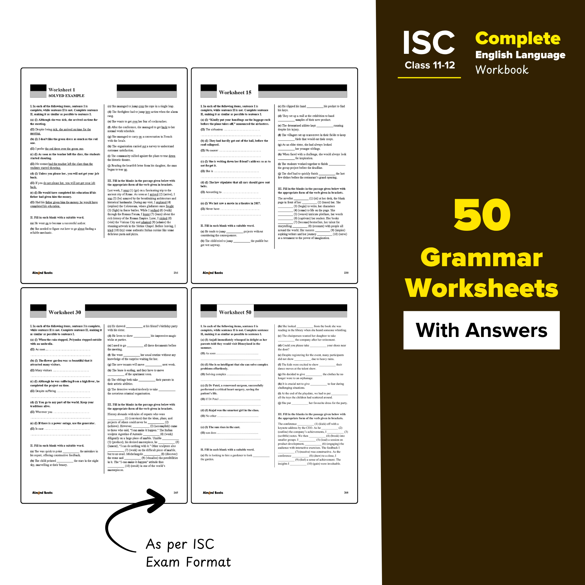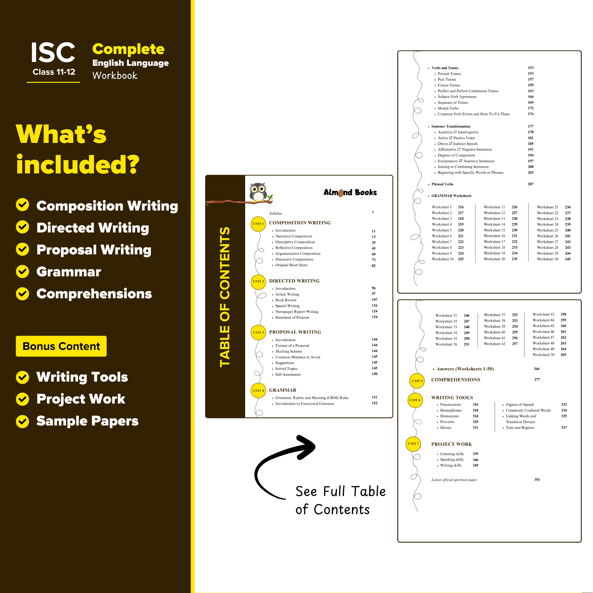 This workbook provides comprehensive practice and guidance for the ISC English Language course, aligned strictly with the latest CISCE syllabus. It covers all key areas of the subject: Composition Writing, Directed Writing, Proposal Writing, Grammar, and Comprehension.