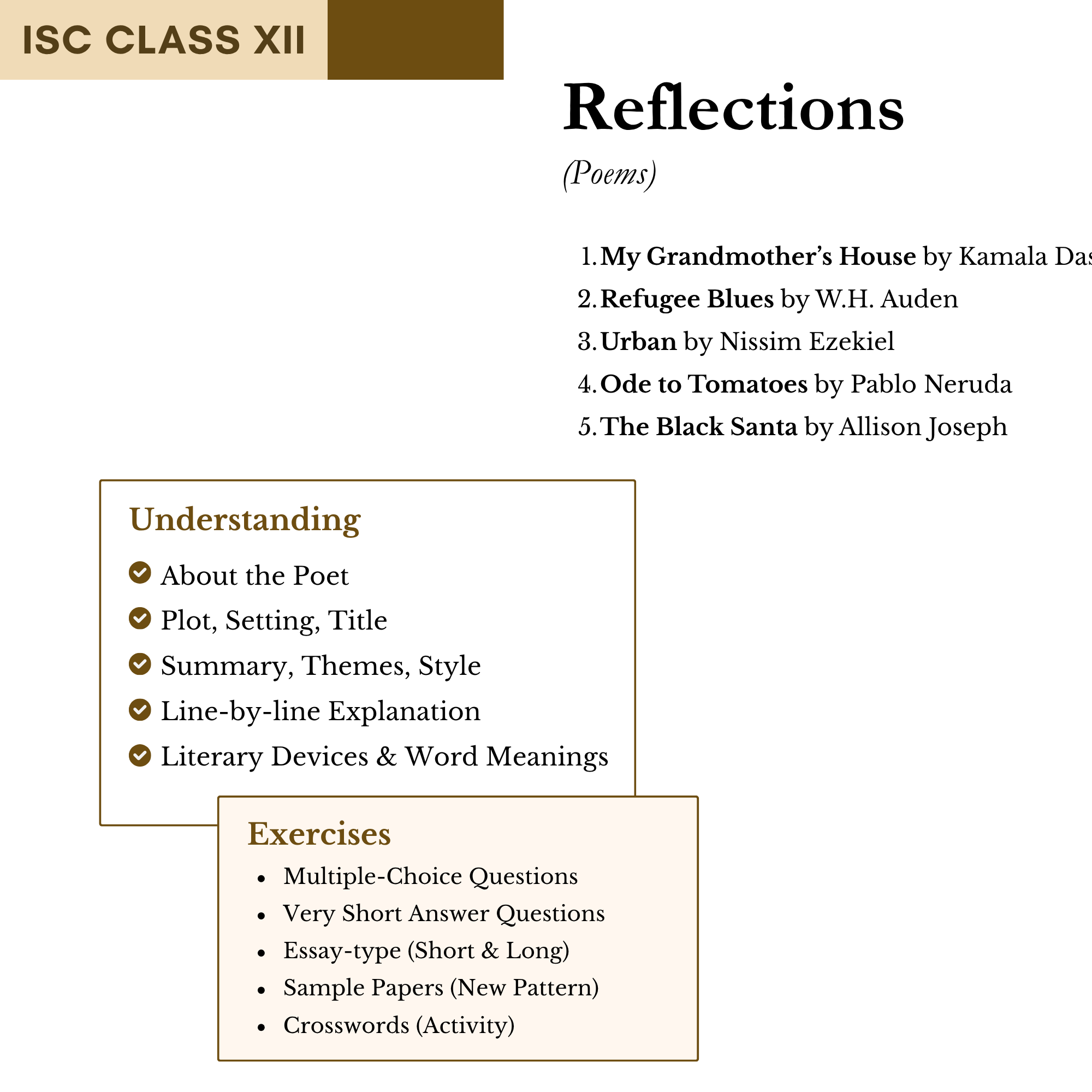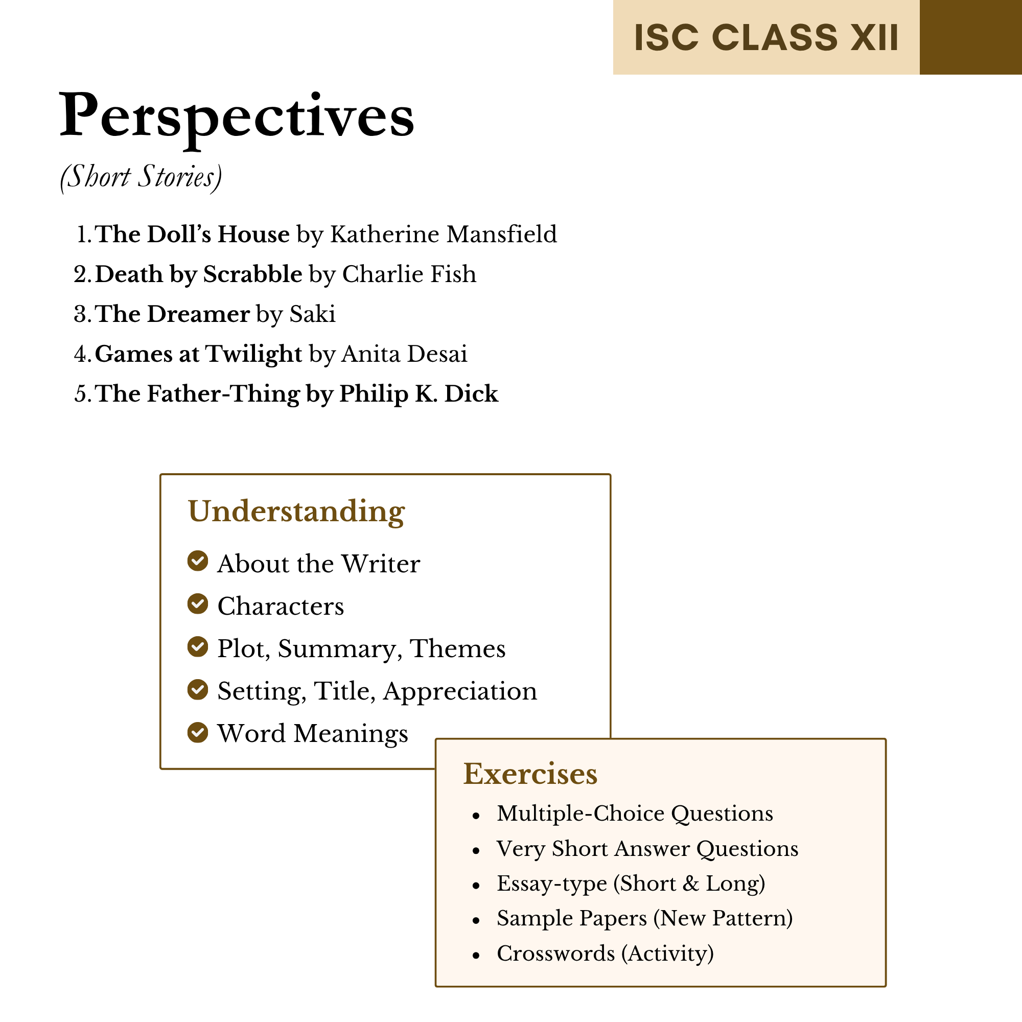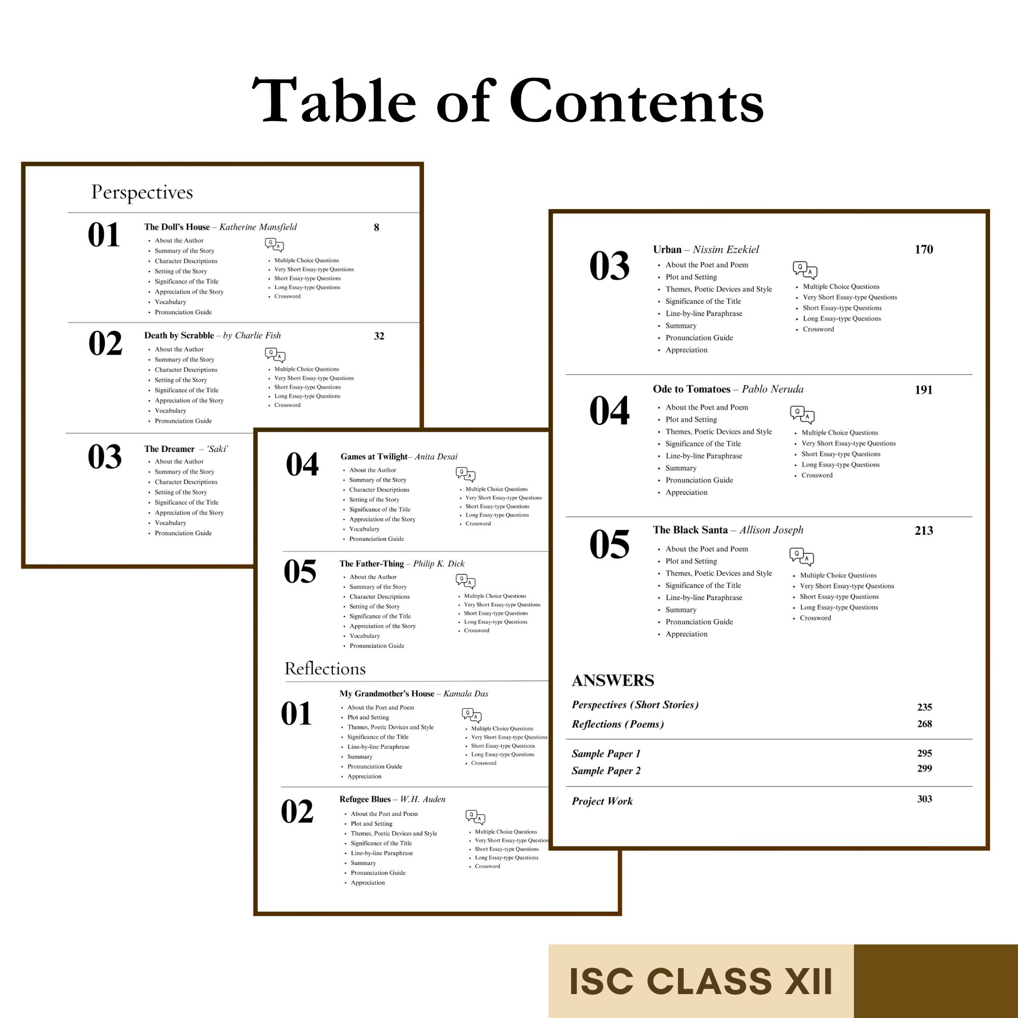 A solved workbook for ISC Class 12 Modern English, covering the complete Perspectives and Reflections syllabi, aligned to the ISC 2027 Board examinations.